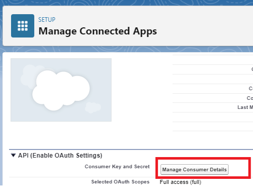 4. Click Manage Consumer Details. Copy the Consumer Key and Consumer Secret and save it somewhere safe.