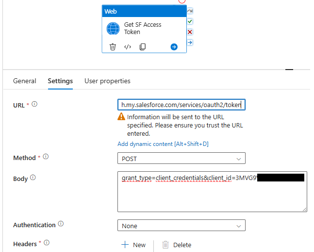 During this phase, we obtain an access token in the form of a Bearer token. This is achieved by running an API POST to our Salesforce instance where the Connected App has been created. We pass our Consumer Key and Consumer Secret in the body in order to obtain the token. Once we have a valid Bearer token it is possible to make custom API calls as required in order to obtain actual data.